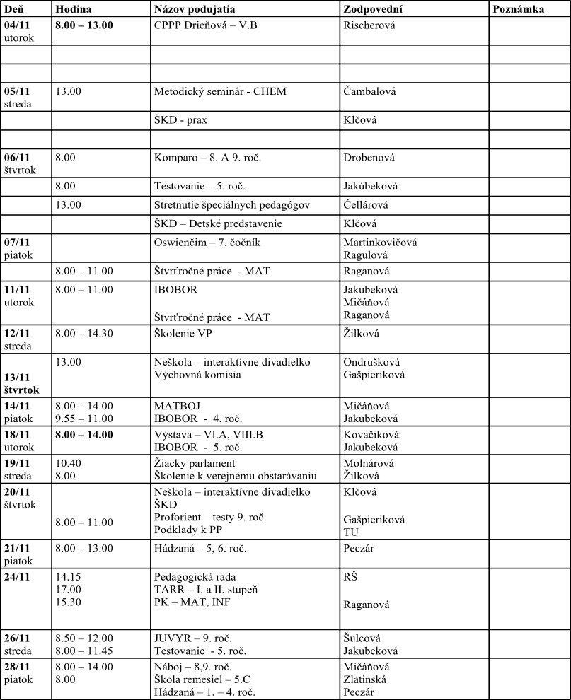 dodržiavanie pracovného času – nástupy na vyučovacie hodiny a ukončenie vyučovacích hodín